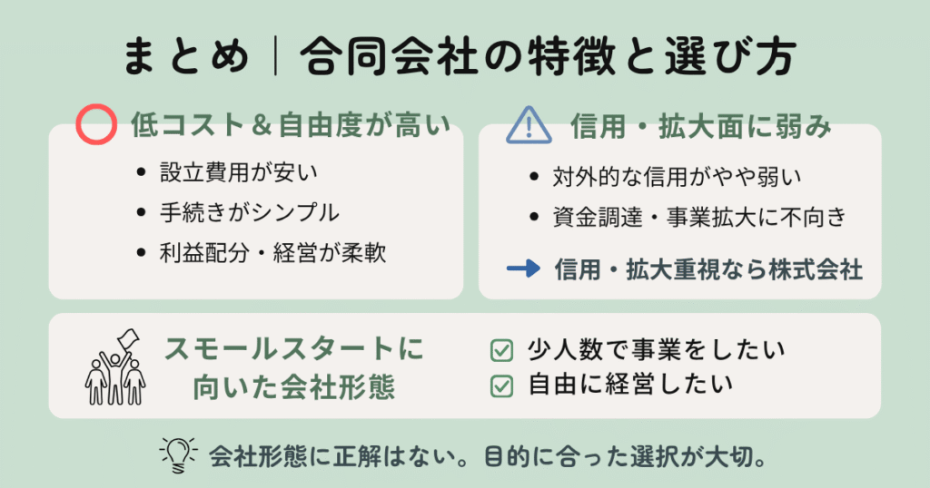 まとめ|合同会社はコストを抑えたスモールスタート向き