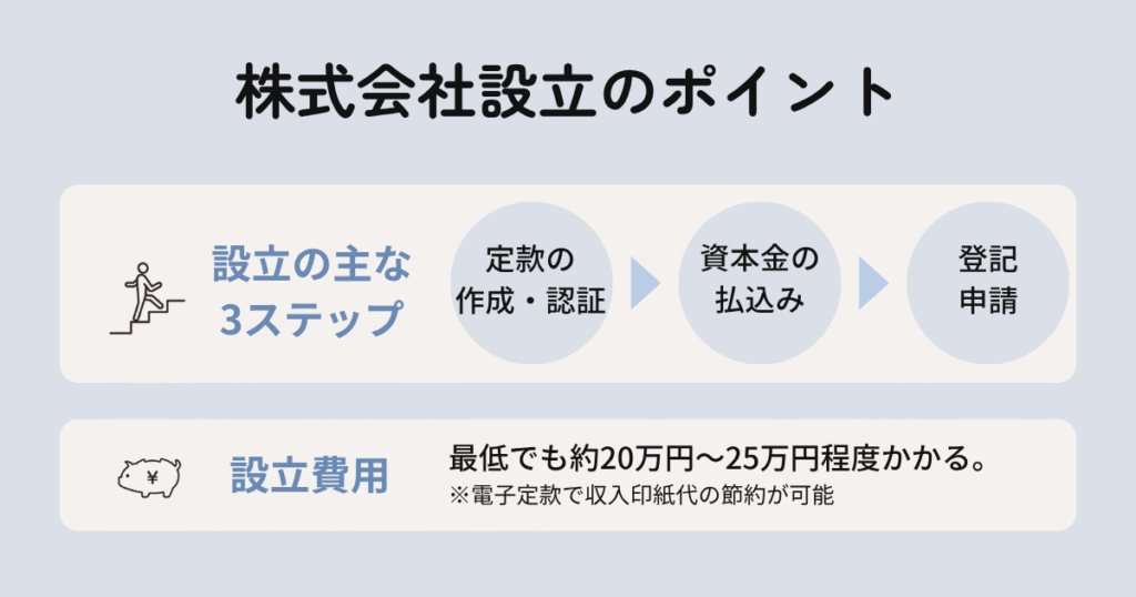また、設立に必要な費用は、おおよそ20〜25万円程度です。