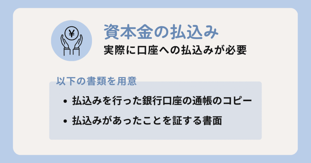 4.資本金を払い込む発起人個人(1名)の口座へ資本金の払込を行います。